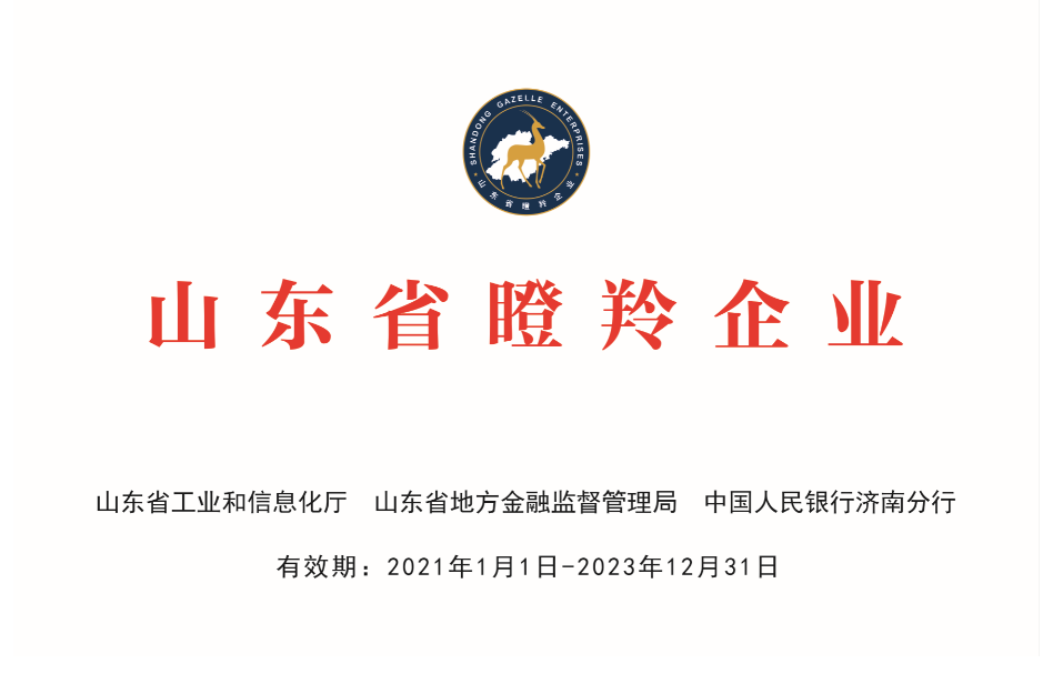 ★獲ISO9001:2000質(zhì)量管理體系認證證書★獲得山東省瞪羚企業(yè)、濟南市瞪羚企業(yè)稱號★獲得山東省專精特新企業(yè)稱號★獲得濟南市專精特新企業(yè)稱號★獲省市“重合同守信用企業(yè)”稱號